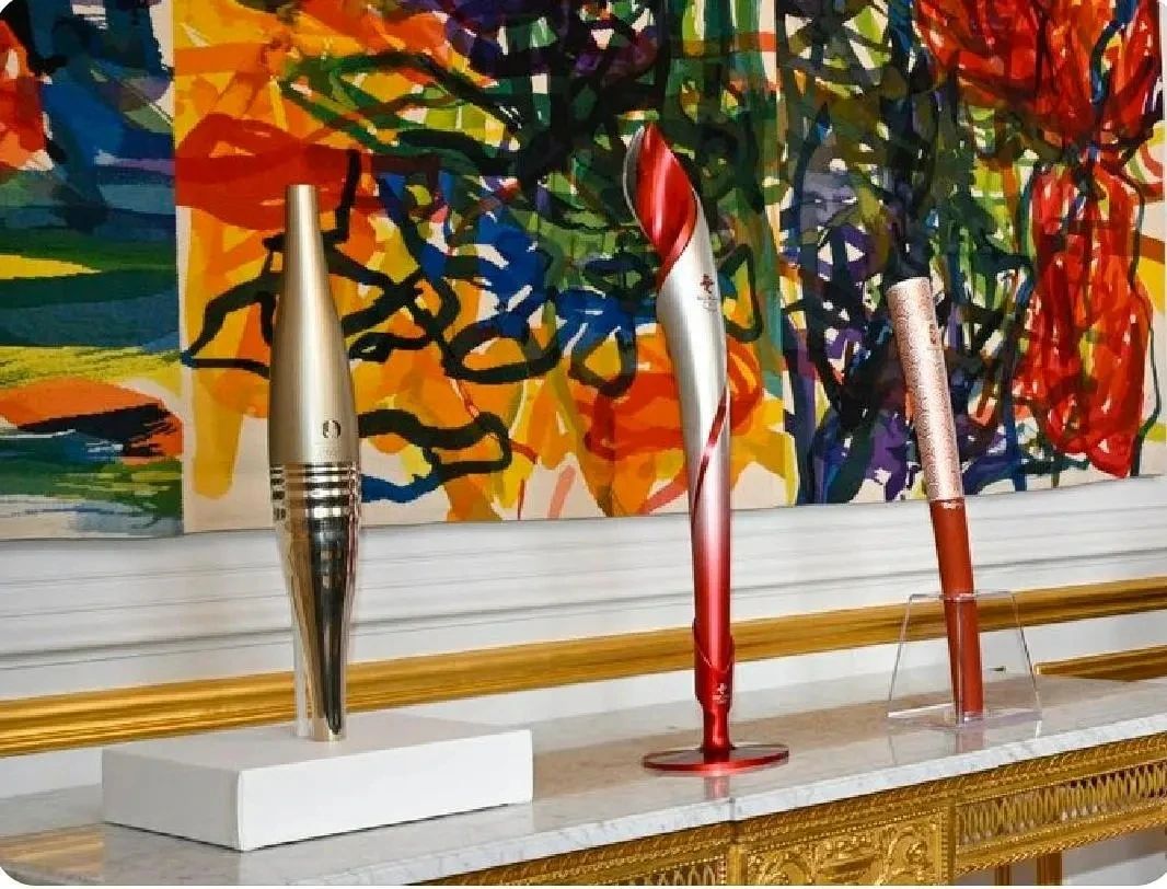 當?shù)貢r間5月6日下午,國家主席習近平在巴黎愛麗舍宮同法國總統(tǒng)馬克龍舉行會談。會談前,兩國元首夫婦互贈禮品,其中三支奧運火炬尤為引人注目。