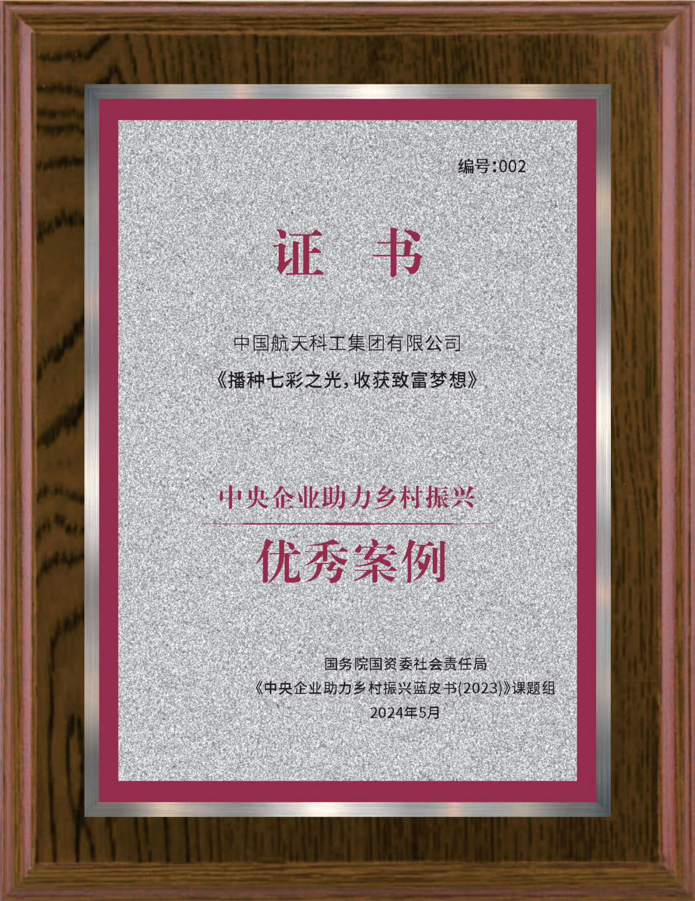 近日,國務(wù)院國資委舉辦中央企業(yè)助力鄉(xiāng)村振興經(jīng)驗(yàn)交流會,會上發(fā)布了《中央企業(yè)助力鄉(xiāng)村振興藍(lán)皮書(2023)》,頒發(fā)了2023年度中央企業(yè)助力鄉(xiāng)村振興優(yōu)秀案例和示范項(xiàng)目證書,中國航天科工《播種七彩之光 收獲致富夢想》成功入選22個產(chǎn)業(yè)振興優(yōu)秀案例之一,并納入《中央企業(yè)助力鄉(xiāng)村振興藍(lán)皮書(2023)》。這是國務(wù)院國資委第二次開展中央企業(yè)助力鄉(xiāng)村振興優(yōu)秀案例和示范項(xiàng)目評選,繼去年《航天技術(shù)化身森林衛(wèi)士防災(zāi)減災(zāi)守護(hù)綠水青山》首次成功入選示范項(xiàng)目后,今年航天科工再次獲評優(yōu)秀案例。