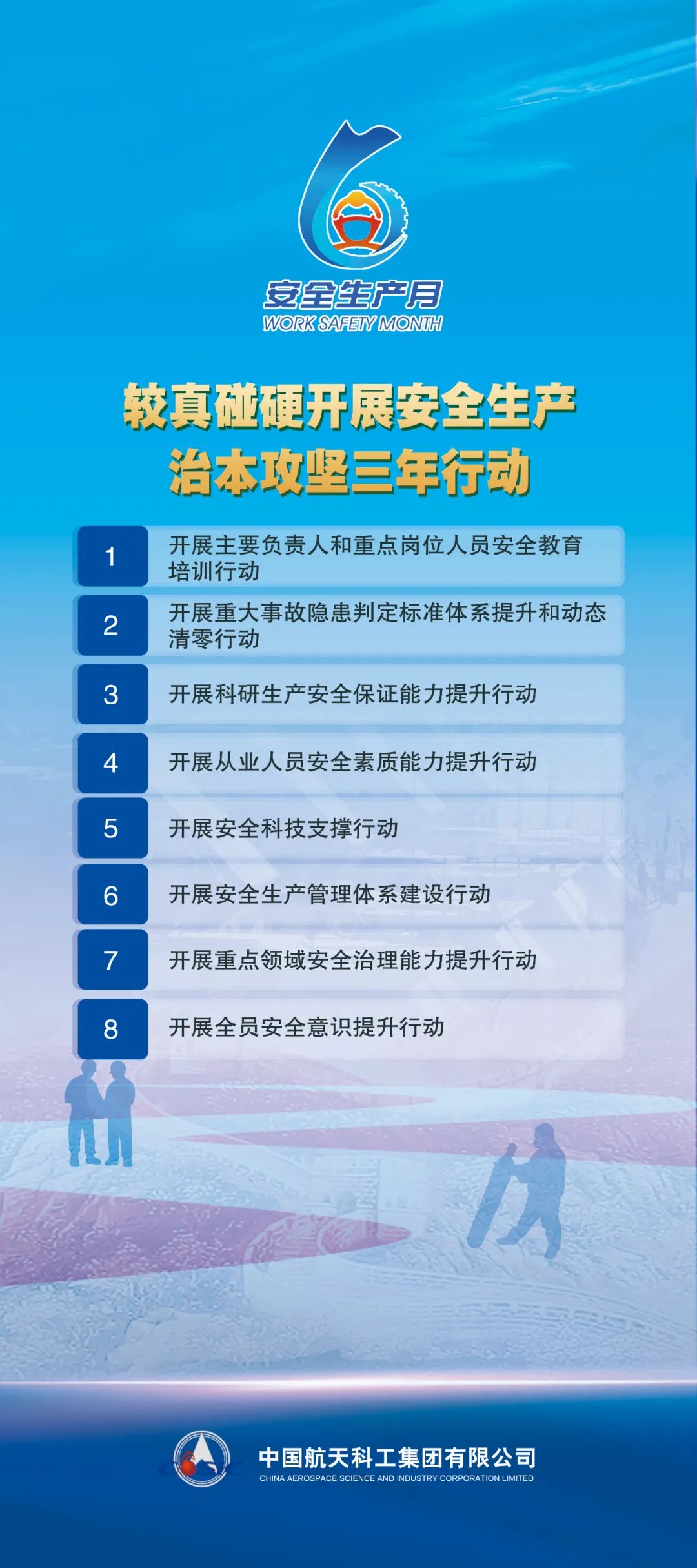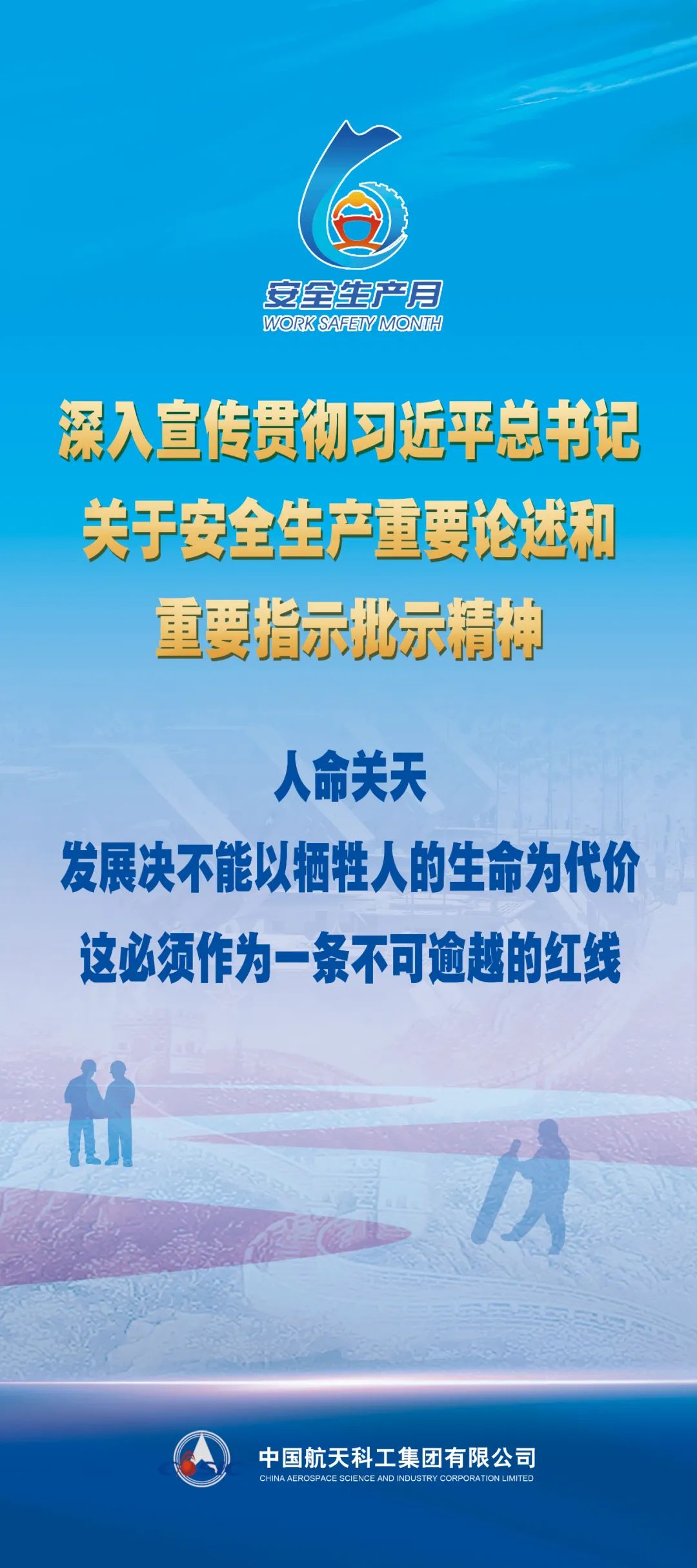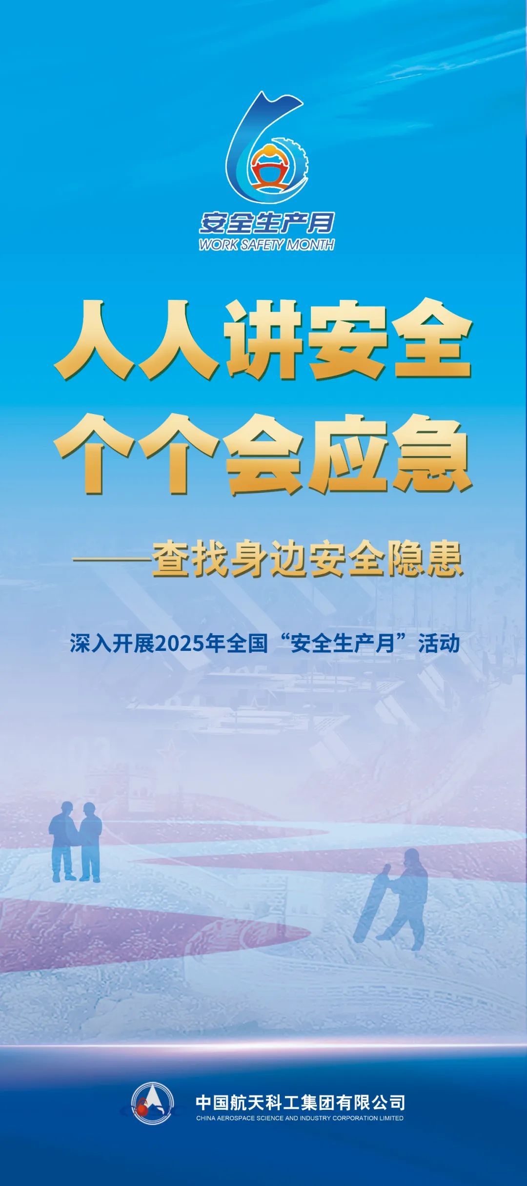 今年6月是第24個全國“安全生產(chǎn)月”,主題為“人人講安全、個個會應急——查找身邊安全隱患”,6月16日為全國“安全宣傳咨詢?nèi)铡薄=?,中國航天科工集團有限公司印發(fā)通知,對在全系統(tǒng)開展好2025年全國“安全生產(chǎn)月”活動作出安排部署。