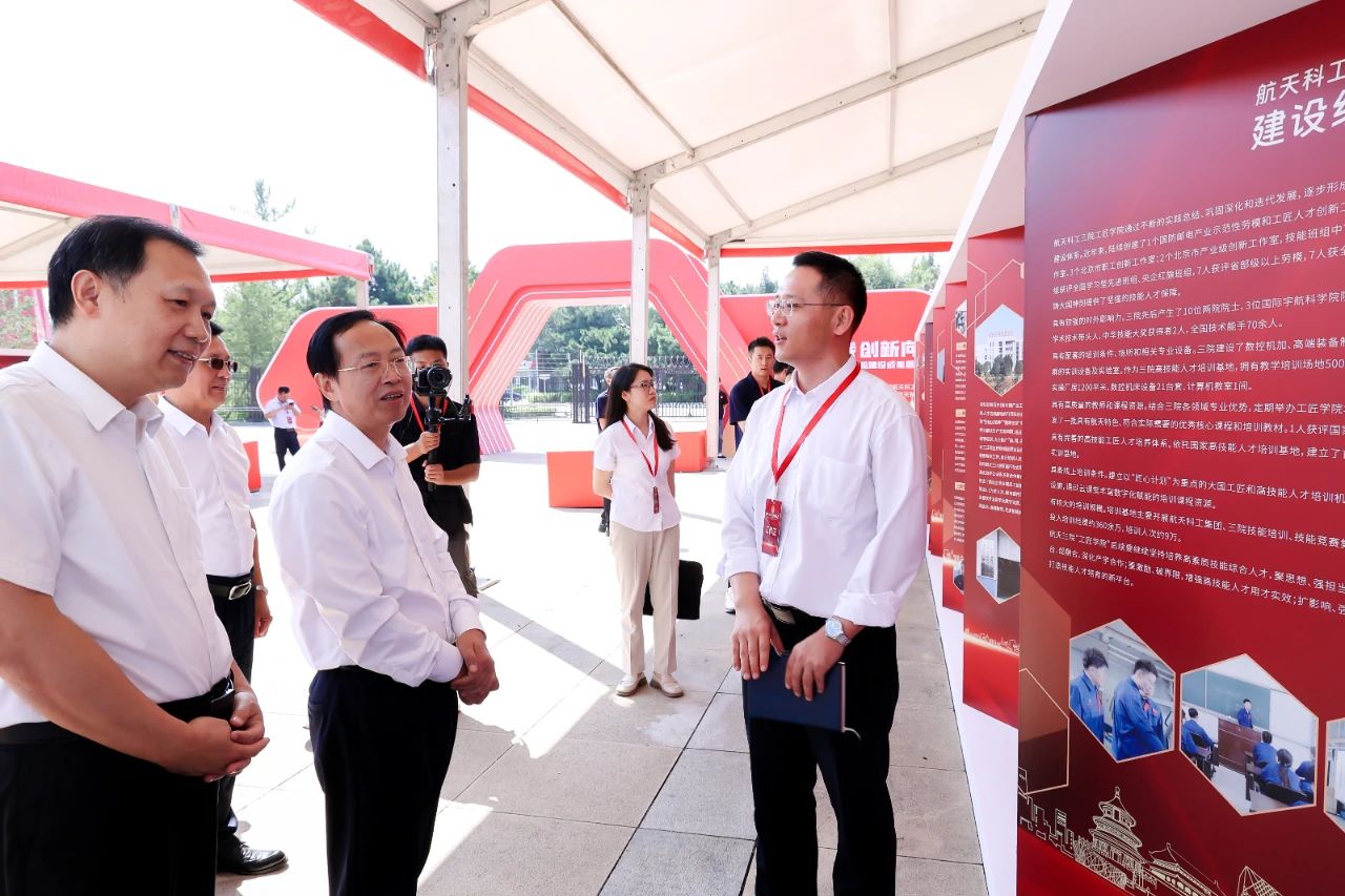 開幕式結(jié)束后,與會(huì)人員參觀了國防郵電產(chǎn)業(yè)工匠學(xué)院建設(shè)成果展。共有來自國防郵電產(chǎn)業(yè)所屬的28家工匠學(xué)院以實(shí)物、展板、現(xiàn)場(chǎng)教學(xué)交流等形式展示了建設(shè)經(jīng)驗(yàn)、創(chuàng)新成果及精品課程等內(nèi)容。