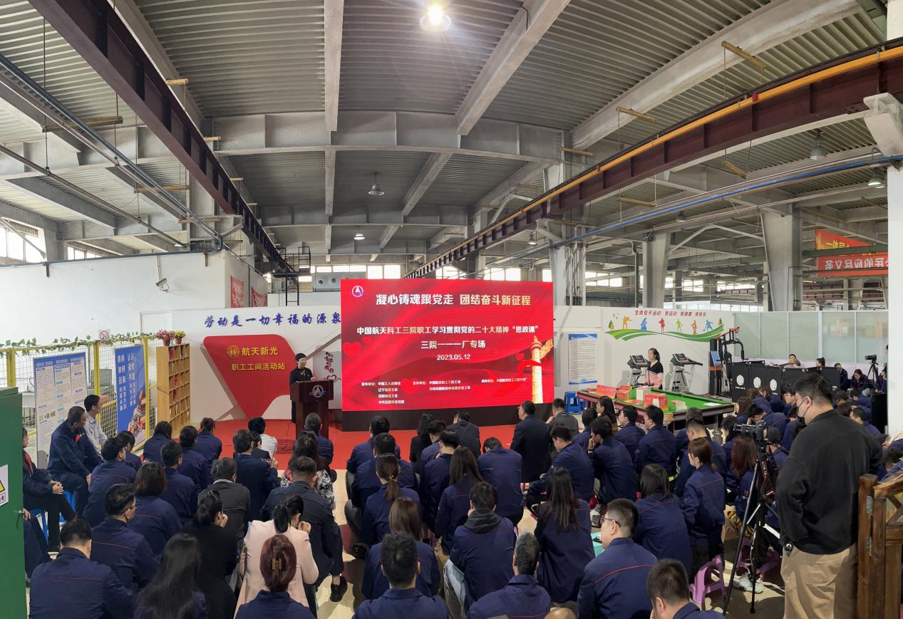 三院工會堅決履行團結(jié)引導(dǎo)職工群眾聽黨話、跟黨走的政治責(zé)任,各級工會組織通過干部培訓(xùn)班、專題學(xué)習(xí)等形式線上線下學(xué)習(xí)黨的二十大精神、中國工會十八大精神。在“飛航e家”上線中國工會十八大新聞中心,千余名職工連續(xù)10天打卡學(xué)習(xí)相關(guān)知識并完成答題活動。三院工會創(chuàng)新開設(shè)“思政課”,由24位勞模工匠、先進典型組成的宣講團走進8家單位的班組車間、生產(chǎn)一線,用“身邊故事”講活“火熱實踐”。
