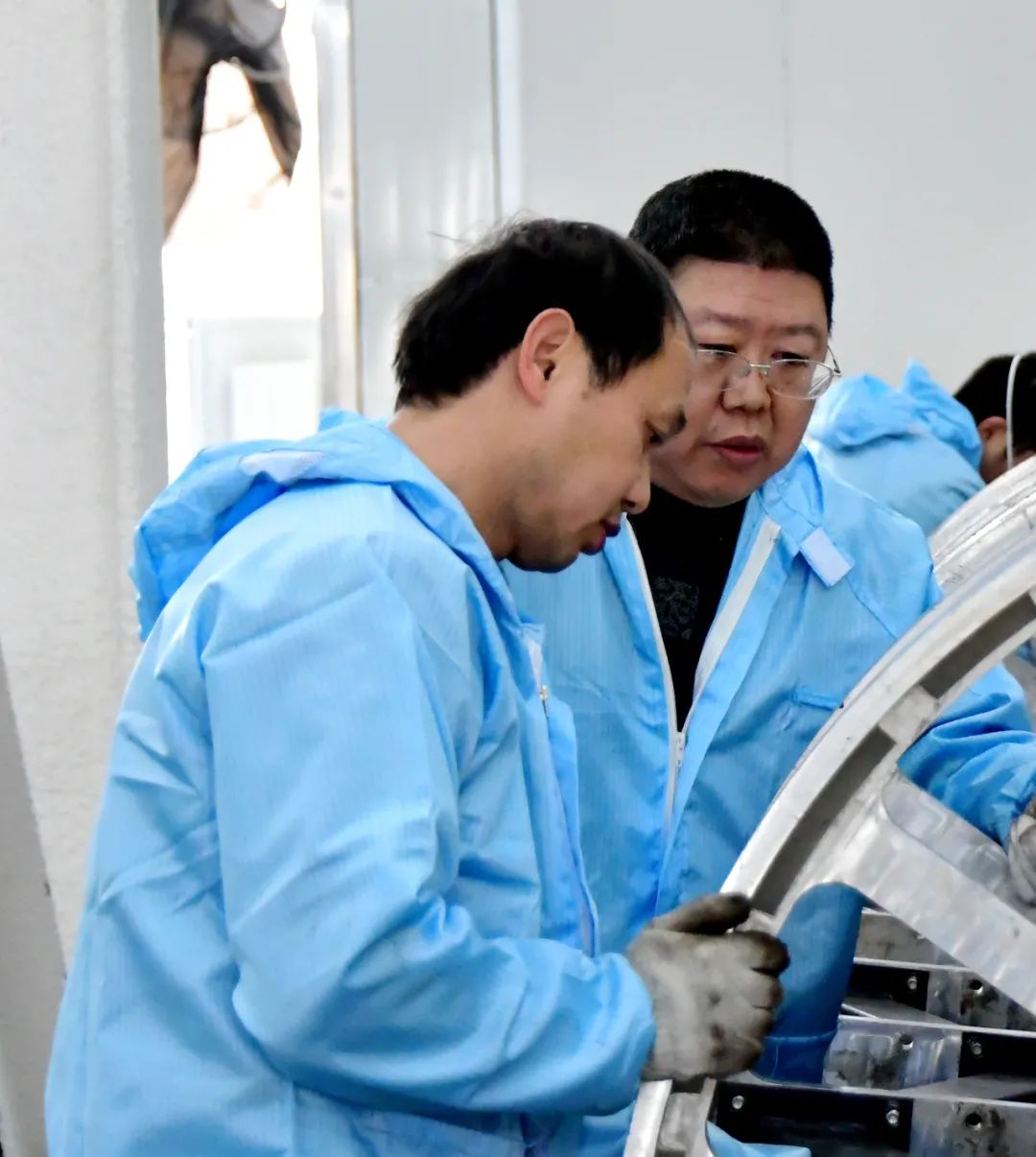 為確保各項科研生產(chǎn)任務高質(zhì)量、高標準按時履約交付,春節(jié)期間,紅林公司部分干部職工堅守崗位,他們嚴格按程序、按制度、按標準加工每一件產(chǎn)品,對待每一道工序,全力奮戰(zhàn)開門紅。圖為裝配檢驗班組職工正在仔細校對零件數(shù)據(jù)。(圖文/尹旋坤)