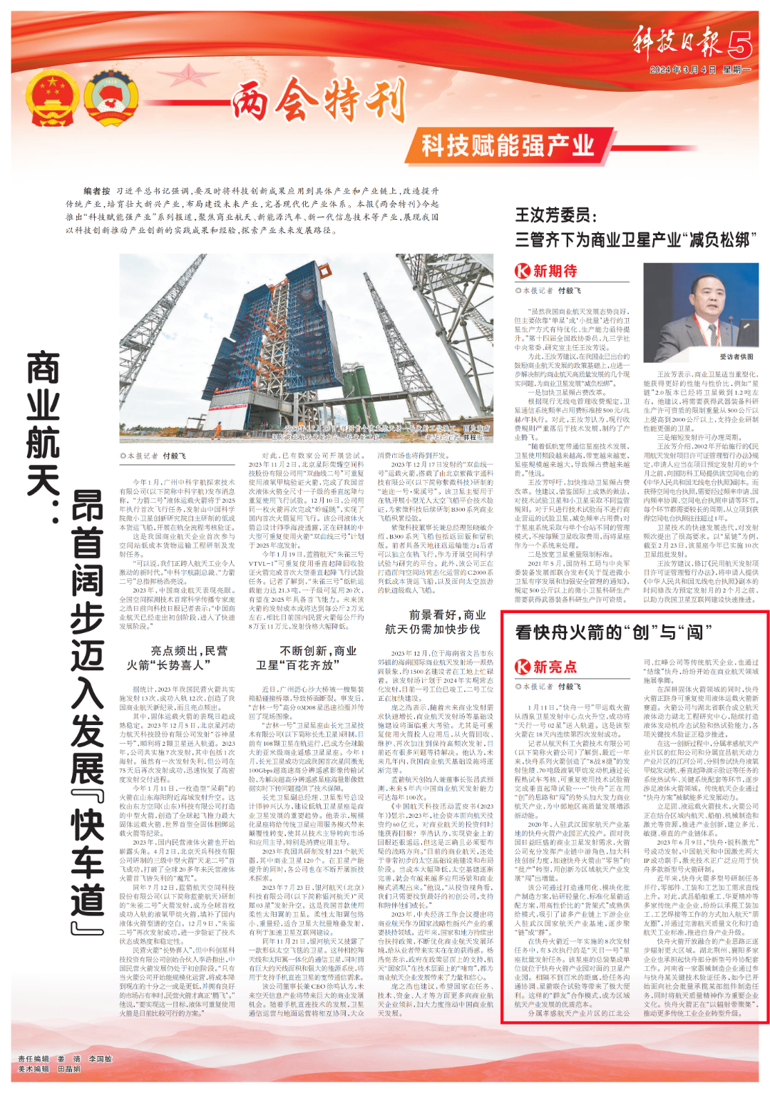 全國兩會召開之際,《科技日報》兩會特刊推出“科技賦能強產業(yè)”系列報道,展現我國以科技創(chuàng)新推動產業(yè)創(chuàng)新的實踐成果和經驗,探索產業(yè)未來發(fā)展路徑。3月4日刊發(fā)題為《看快舟火箭的“創(chuàng)”與“闖”》的文章,聚焦中國航天科工航天三江商業(yè)航天產業(yè)高質量發(fā)展。