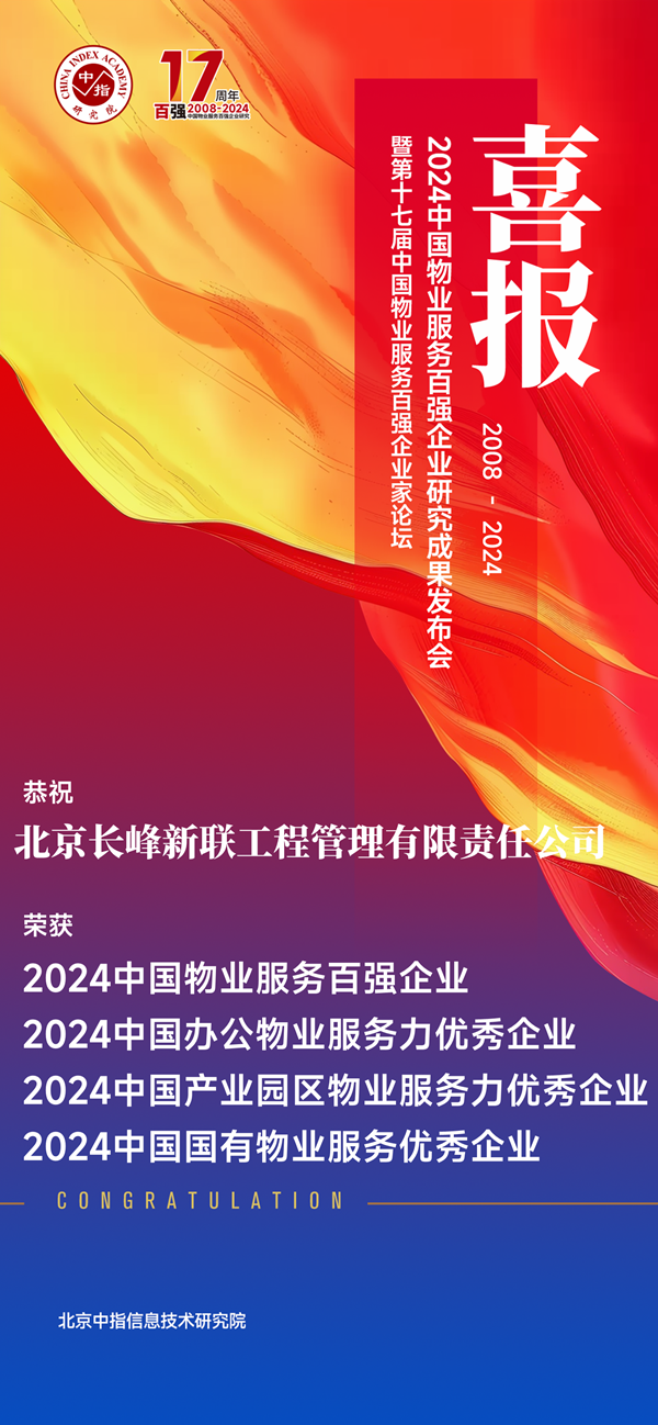 近日,在2024中國物業(yè)服務(wù)百強企業(yè)研究成果發(fā)布會暨第十七屆中國物業(yè)服務(wù)百強企業(yè)家論壇上,中國航天科工二院長峰新聯(lián)公司再次登上全國物業(yè)百強名單,連續(xù)榮獲“2024中國物業(yè)服務(wù)百強企業(yè)”“2024中國國有物業(yè)服務(wù)優(yōu)秀企業(yè)”“2024中國辦公物業(yè)服務(wù)力優(yōu)秀企業(yè)”,排名穩(wěn)步提升。憑借長陽航天城項目一體化保障優(yōu)勢,公司首次獲評“2024產(chǎn)業(yè)園區(qū)物業(yè)服務(wù)力優(yōu)秀企業(yè)”。