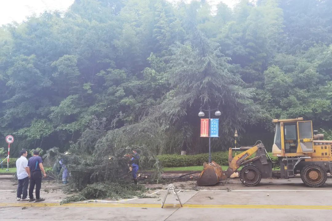 工作人員快速清理暴風(fēng)雨中倒下的樹木