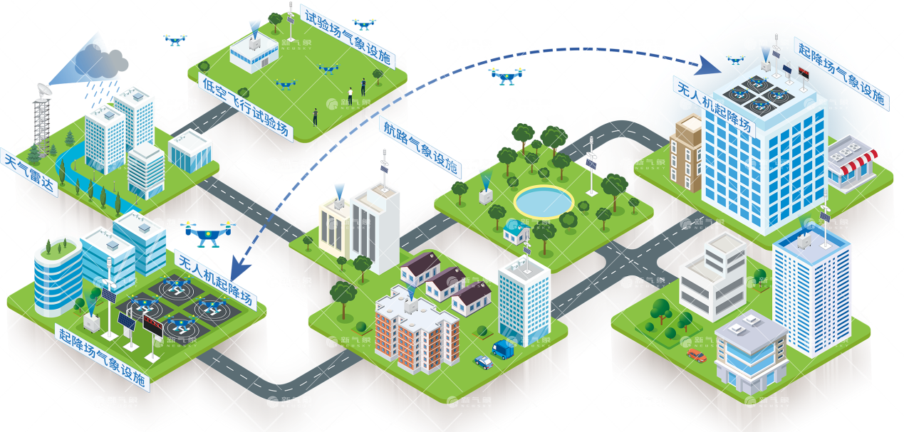 城市無人機(jī)起降場低空氣象保障解決方案是面向無人機(jī)運營商城市起降場氣象保障需求推出的一款氣象監(jiān)測方案。通過將激光測風(fēng)雷達(dá)、微型氣象站、大氣電場儀等探測設(shè)備部署在城市樓頂或者城市航路關(guān)鍵區(qū)域,可實現(xiàn)對起降場以及飛行路線上的氣象信息獲取,不僅能夠?qū)o人機(jī)安全飛行提供氣象信息服務(wù),還能夠為氣象部門開展城市氣象觀測網(wǎng)的規(guī)劃和建設(shè)提供更多前瞻性參考。