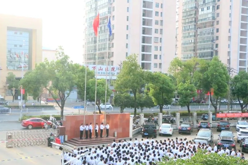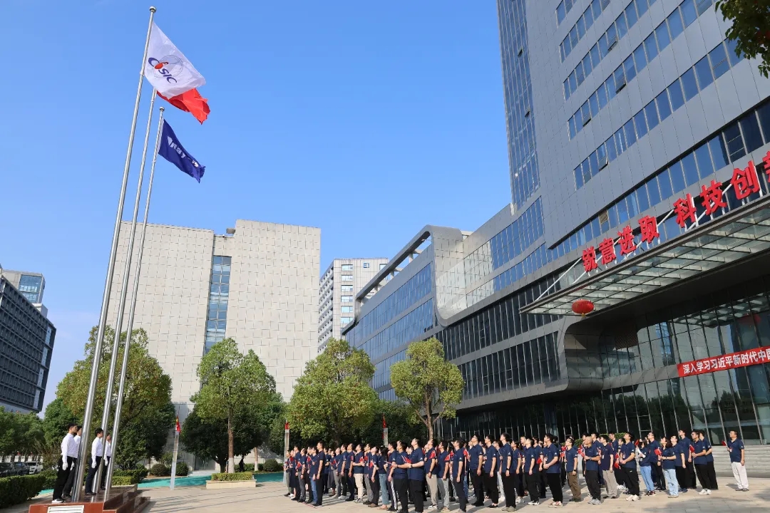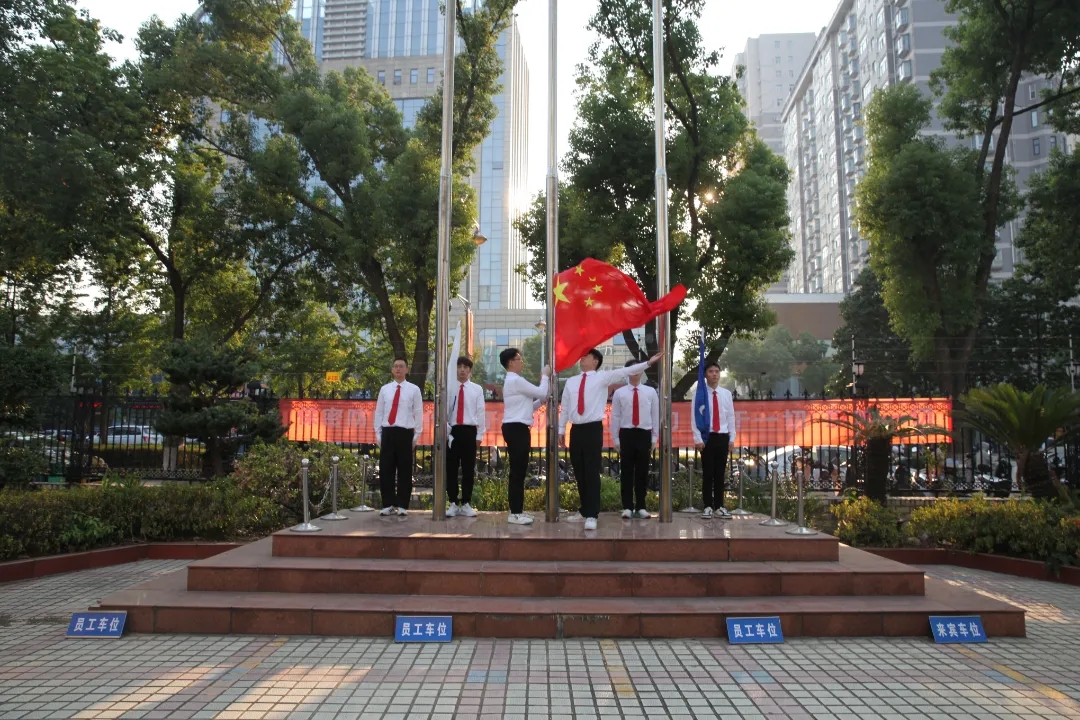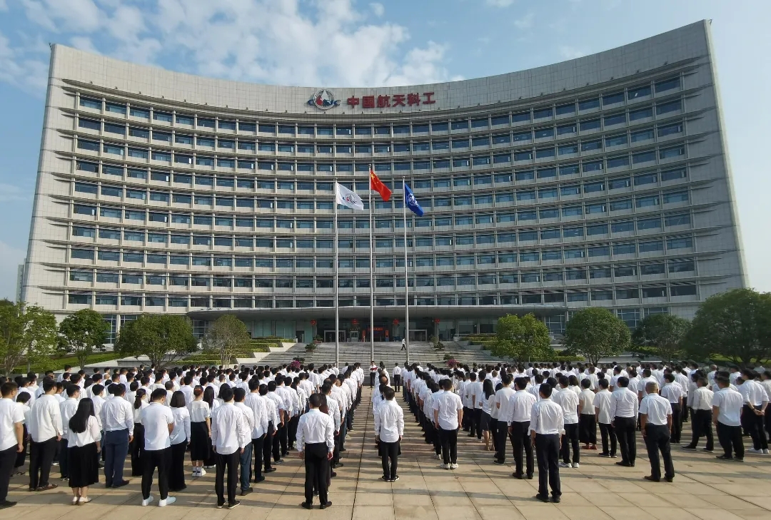 伴隨著國歌的雄壯旋律,鮮艷的五星紅旗冉冉升起,參加升旗儀式的干部職工面向國旗行注目禮、高唱國歌,送出對祖國母親的深深祝福。在集團(tuán)公司司歌聲中,司旗迎風(fēng)飄揚(yáng),大家以昂揚(yáng)的斗志,表達(dá)對航天事業(yè)的熾熱情懷。