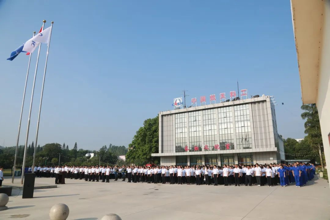 伴隨著雄壯的國歌,鮮艷的五星紅旗冉冉升起、高高飄揚,在激昂的航天科工之歌旋律中,集團公司司旗徐徐上升、迎風招展。全場干部職工莊嚴肅立,行注目禮。
