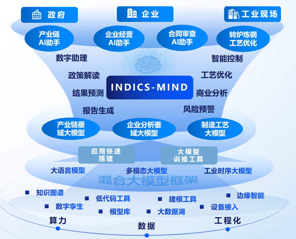 近年來,航天云網(wǎng)公司聚焦主責主業(yè),大力發(fā)展戰(zhàn)新產(chǎn)業(yè),以智能制造為主攻方向,持續(xù)布局工業(yè)大模型,升級新一代工業(yè)互聯(lián)網(wǎng)關(guān)鍵能力,打造了INDICS-MIND工業(yè)大模型全景產(chǎn)品,提供集大模型應(yīng)用開發(fā)、模型服務(wù)以及大模型智能應(yīng)用于一體的工業(yè)大模型解決方案。聚焦產(chǎn)業(yè)鏈治理、企業(yè)智慧經(jīng)營、工業(yè)現(xiàn)場工藝優(yōu)化等重點場景,不斷推出產(chǎn)業(yè)鏈AI助手、合同AI審查工具、銑削加工AI工藝優(yōu)化、轉(zhuǎn)爐煉鋼AI終點預測等典型工業(yè)大模型應(yīng)用,并已在服務(wù)政府產(chǎn)業(yè)鏈分析和智能工廠建設(shè)等方面開展推廣應(yīng)用,致力推動AI+工業(yè)互聯(lián)網(wǎng)賦能企業(yè)數(shù)字化轉(zhuǎn)型升級,為實現(xiàn)新型工業(yè)化持續(xù)貢獻航天智慧和航天力量。