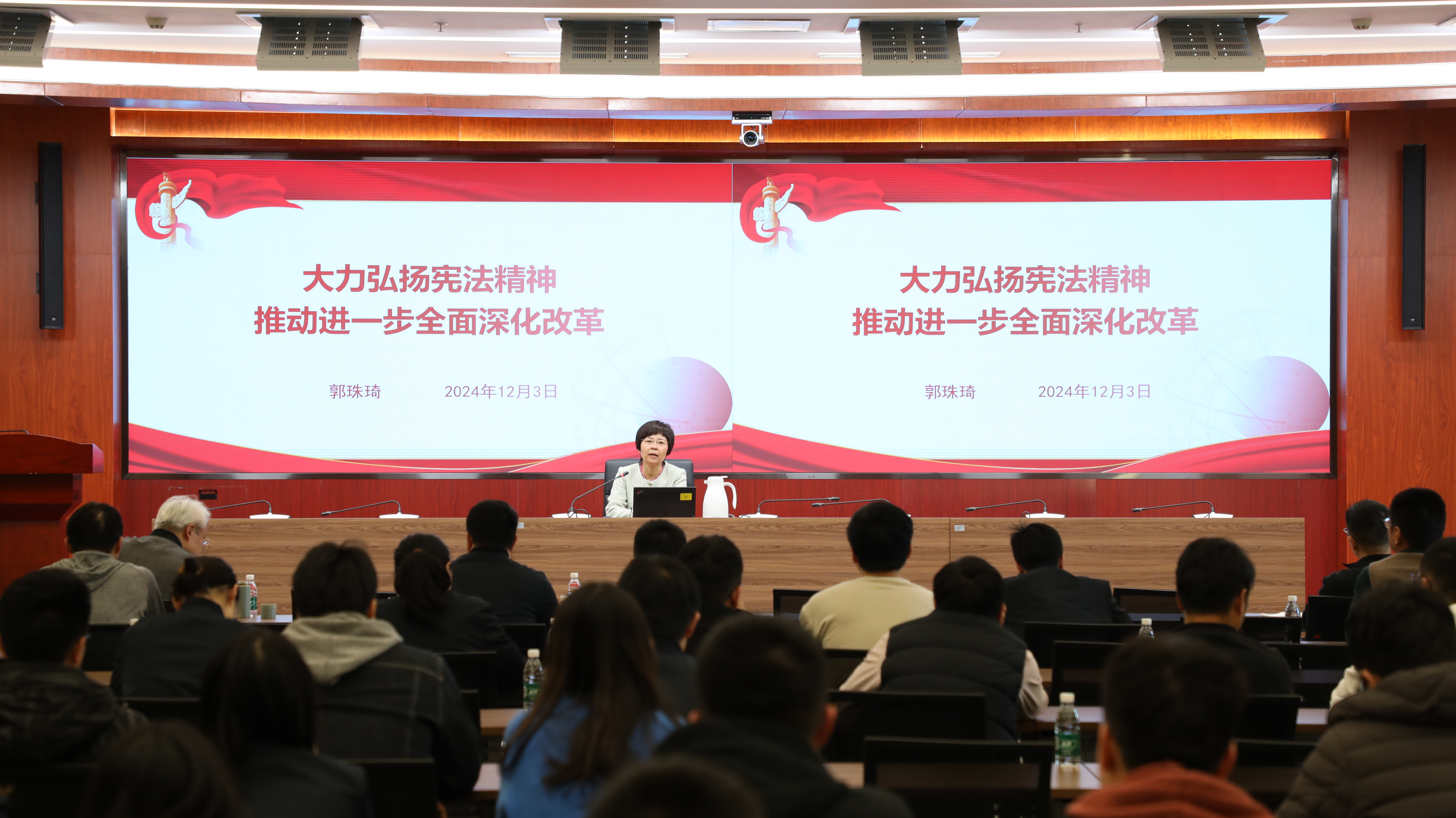 為進一步學習宣傳習近平法治思想,弘揚憲法精神、維護憲法權威,12月3日,航天智能院以“大力弘揚憲法精神,推動進一步全面深化改革”為主題,開展2024年“憲法宣傳周”活動。航天智能院總會計師、首席合規(guī)官郭珠琦,院本部各部門、院屬各中心近80余名干部職工參加本次活動。