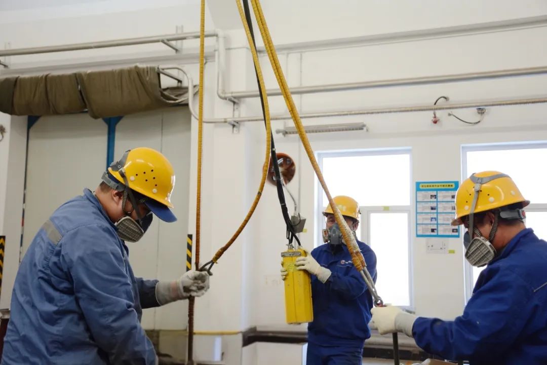 紅峽公司二車間一線職工緊密配合,將沉重的設(shè)備部件平穩(wěn)吊起并準(zhǔn)確放置到指定位置,確保及時(shí)轉(zhuǎn)運(yùn)到下一道工序。
