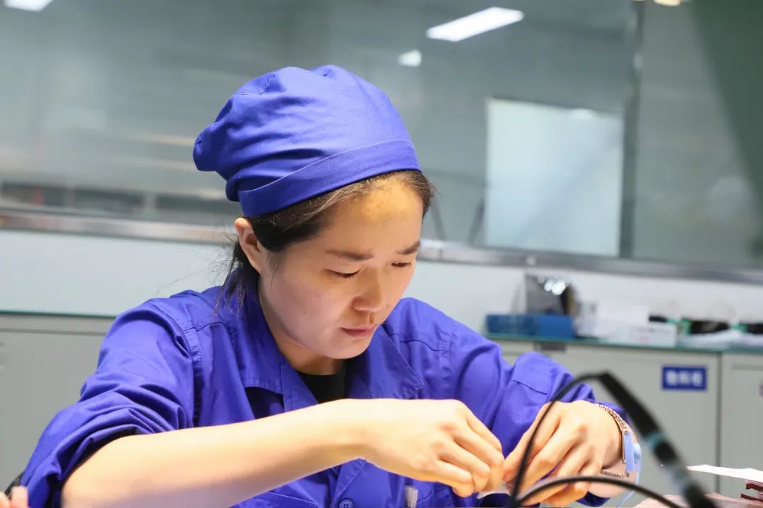 作為電裝中心的“王牌導(dǎo)師”,小徐憑借精湛技藝和耐心教導(dǎo),培養(yǎng)出一批批骨干。她不僅以身作則,以專注嚴(yán)謹(jǐn)?shù)膽B(tài)度投入工作,更會(huì)在徒弟們疲憊時(shí)暖心鼓勁:“加把勁,我們一定能完成。”在這樣團(tuán)結(jié)奮進(jìn)的氛圍中,大家爭(zhēng)分奪秒、你追我趕,全力推動(dòng)生產(chǎn)進(jìn)度。