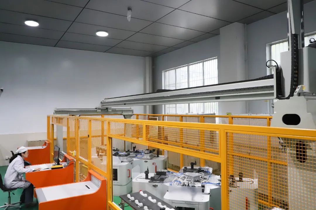 圖為產(chǎn)品自動(dòng)加載測(cè)試智能產(chǎn)線運(yùn)行中