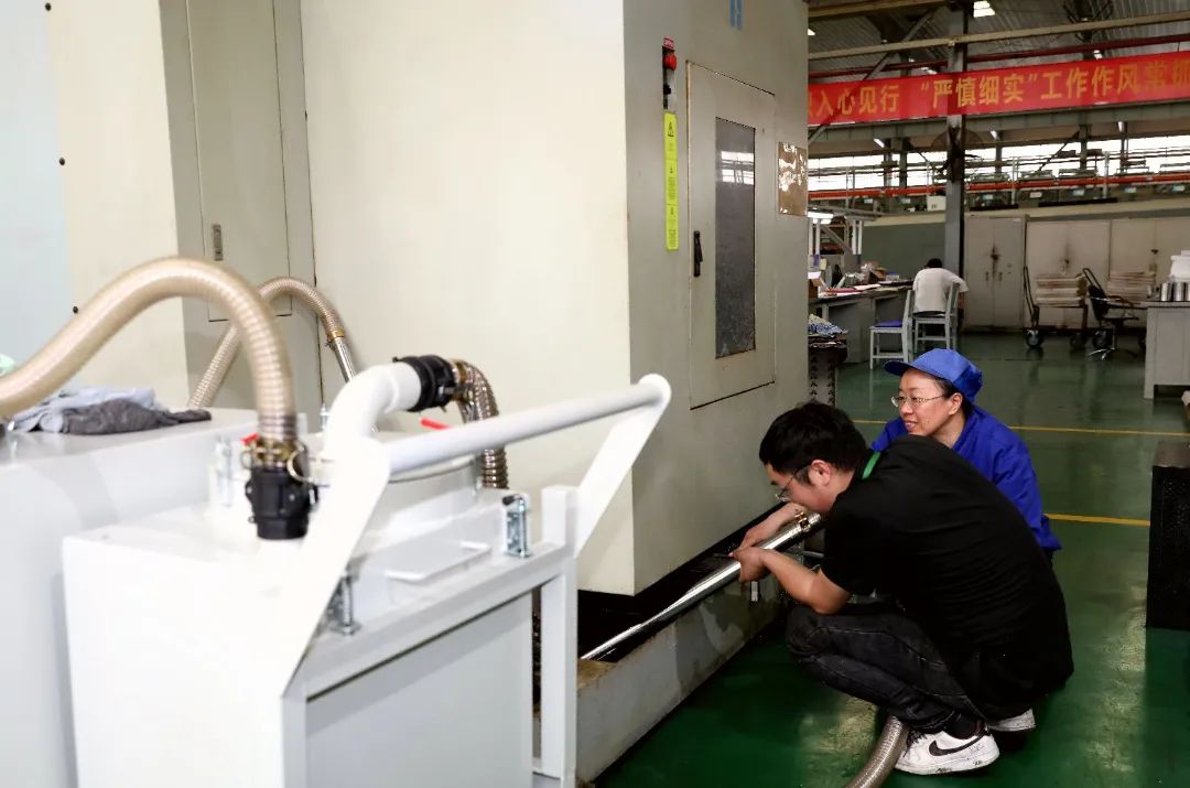 在大廳的另一側,車工小楊正認真地跟設備廠家人員學習清洗機床切削液。數(shù)控機床作為生產(chǎn)的關鍵設備,其運行狀態(tài)直接影響生產(chǎn)節(jié)奏。為確保其“健康”,該公司不惜投入重金,購置清洗機和凈化機,有效解決了設備維護保養(yǎng)耗時耗力、清理不徹底的難題。