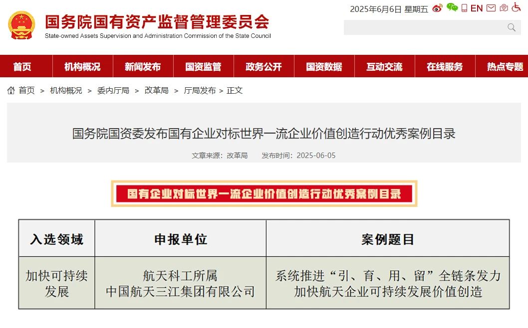 近日,國務(wù)院國資委發(fā)布國有企業(yè)對標(biāo)世界一流企業(yè)價值創(chuàng)造行動優(yōu)秀案例,航天科工九院申報的《系統(tǒng)推進(jìn)“引、育、用、留”全鏈條發(fā)力 加快航天企業(yè)可持續(xù)發(fā)展價值創(chuàng)造》成功入選,是集團公司唯一入選案例。