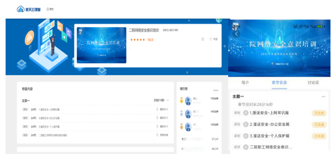 在航天云課堂開設(shè)線上網(wǎng)絡(luò)安全意識(shí)培訓(xùn)和趣味競(jìng)賽,主要包括個(gè)人信息保護(hù)、辦公安全、人工智能安全等網(wǎng)絡(luò)安全知識(shí)。全院5700余人次積極參加在線培訓(xùn)和競(jìng)賽,130余名員工勇闖百關(guān),通過寓教于樂普及網(wǎng)絡(luò)安全知識(shí)。