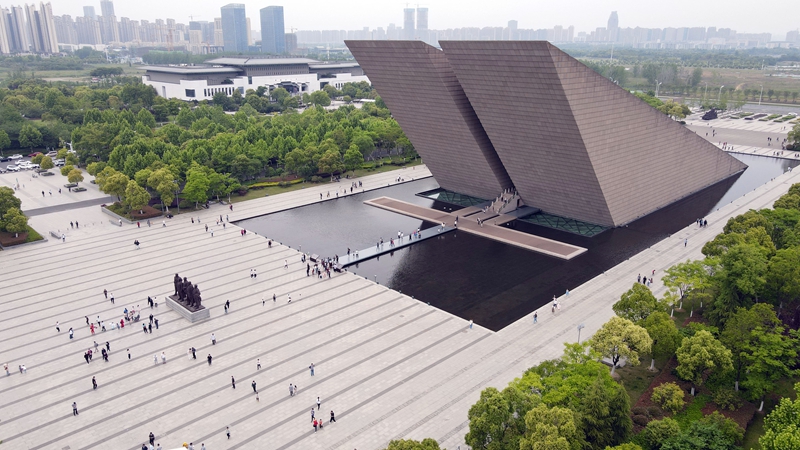 游客在合肥渡江戰(zhàn)役紀念館參觀游覽(2021年5月3日,無人機照片)。新華社記者 周牧 攝