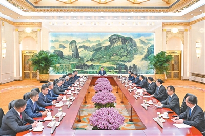 七月十五日上午,國家主席習(xí)近平在北京人民大會(huì)堂集體會(huì)見來華出席上海合作組織成員國外長理事會(huì)會(huì)議的各國外長和常設(shè)機(jī)構(gòu)負(fù)責(zé)人。新華社記者殷博古攝