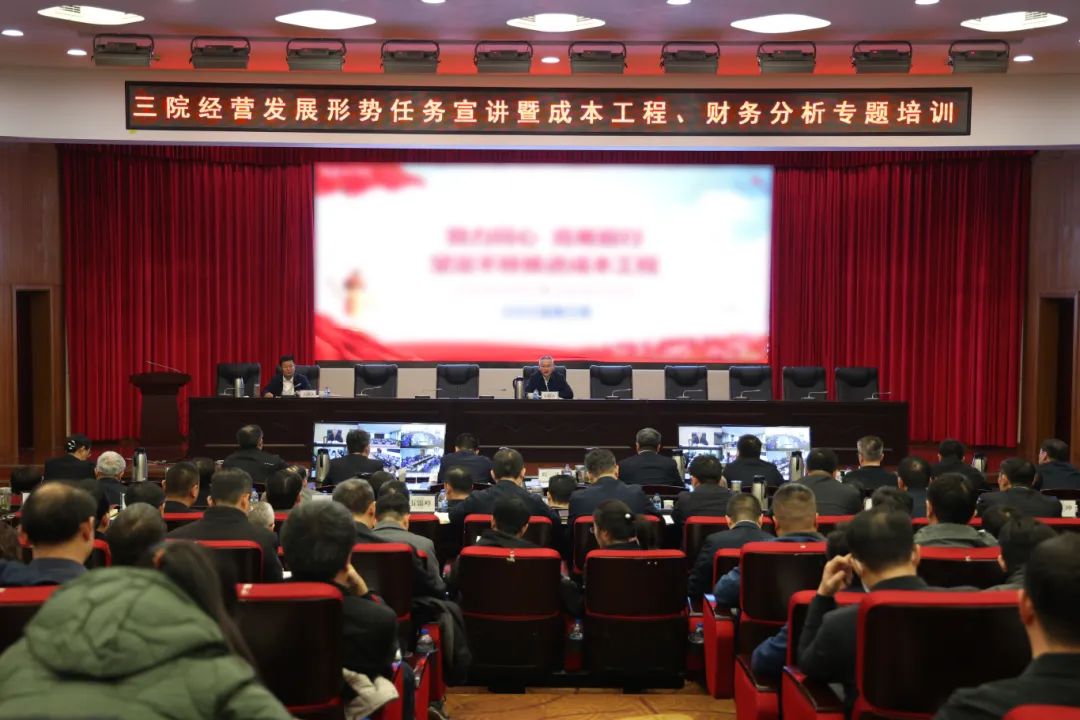 總會計(jì)師王大偉圍繞“從財(cái)務(wù)報(bào)表客觀認(rèn)識當(dāng)前經(jīng)營之‘道’、從思想認(rèn)識切實(shí)扭轉(zhuǎn)傳統(tǒng)思維之‘變’、從自我革新全面把握發(fā)展三院發(fā)展之‘機(jī)’”三個(gè)方面內(nèi)容,對當(dāng)前經(jīng)營形勢進(jìn)行深入分析,闡述了如何提升經(jīng)營意識、樹立財(cái)務(wù)思維,運(yùn)用財(cái)務(wù)分析提升企業(yè)經(jīng)營質(zhì)量及現(xiàn)代治理能力。