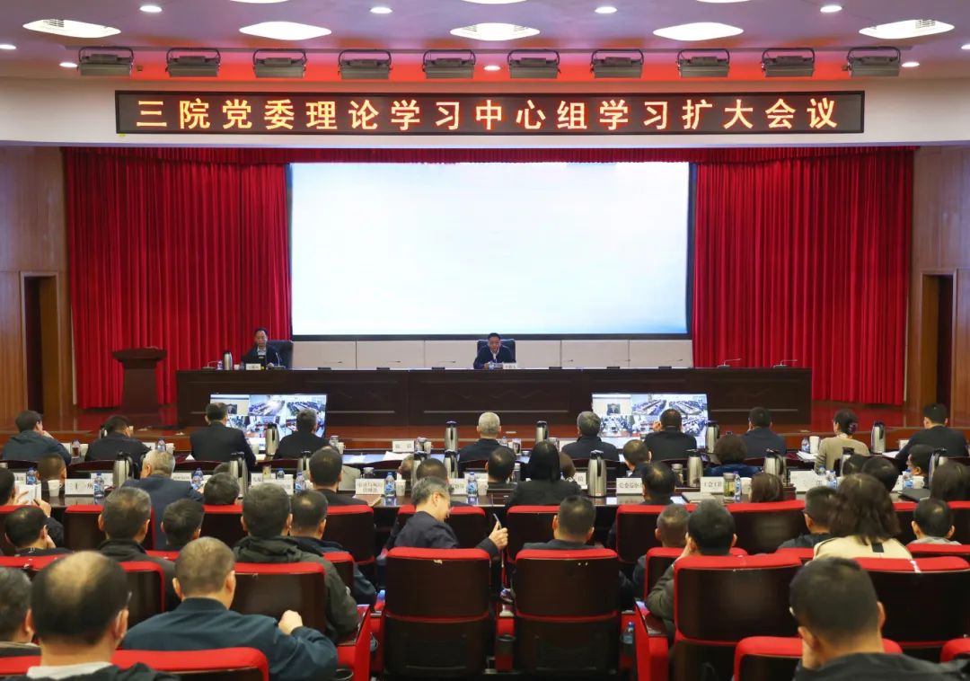 三院全體在家院領(lǐng)導(dǎo)、本部各部門負(fù)責(zé)人,院屬單位領(lǐng)導(dǎo)班子成員,部分單位相關(guān)部門負(fù)責(zé)人等300余人在主會(huì)場和視頻分會(huì)場參加學(xué)習(xí)。三院黨委書記施毅主持學(xué)習(xí)會(huì)。