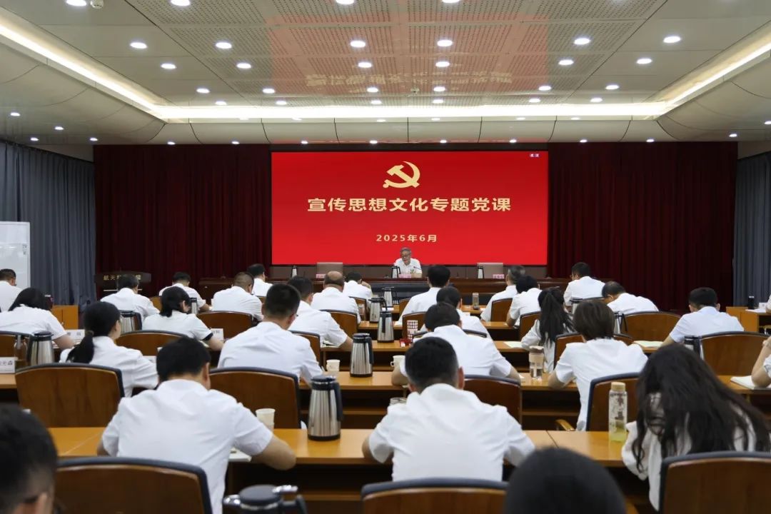 黨課中,趙勇闡述了新時代黨的創(chuàng)新理論的層次和范疇,習(xí)近平文化思想的形成過程、豐富內(nèi)涵和學(xué)習(xí)要求;闡述了宣傳思想文化工作的重點(diǎn)難點(diǎn)和六院各級組織的宣傳思想文化責(zé)任;闡述了加強(qiáng)和改進(jìn)宣傳思想文化工作的極端重要性、緊迫性;強(qiáng)調(diào)了當(dāng)前及今后一段時期宣傳思想文化工作重點(diǎn)任務(wù)。