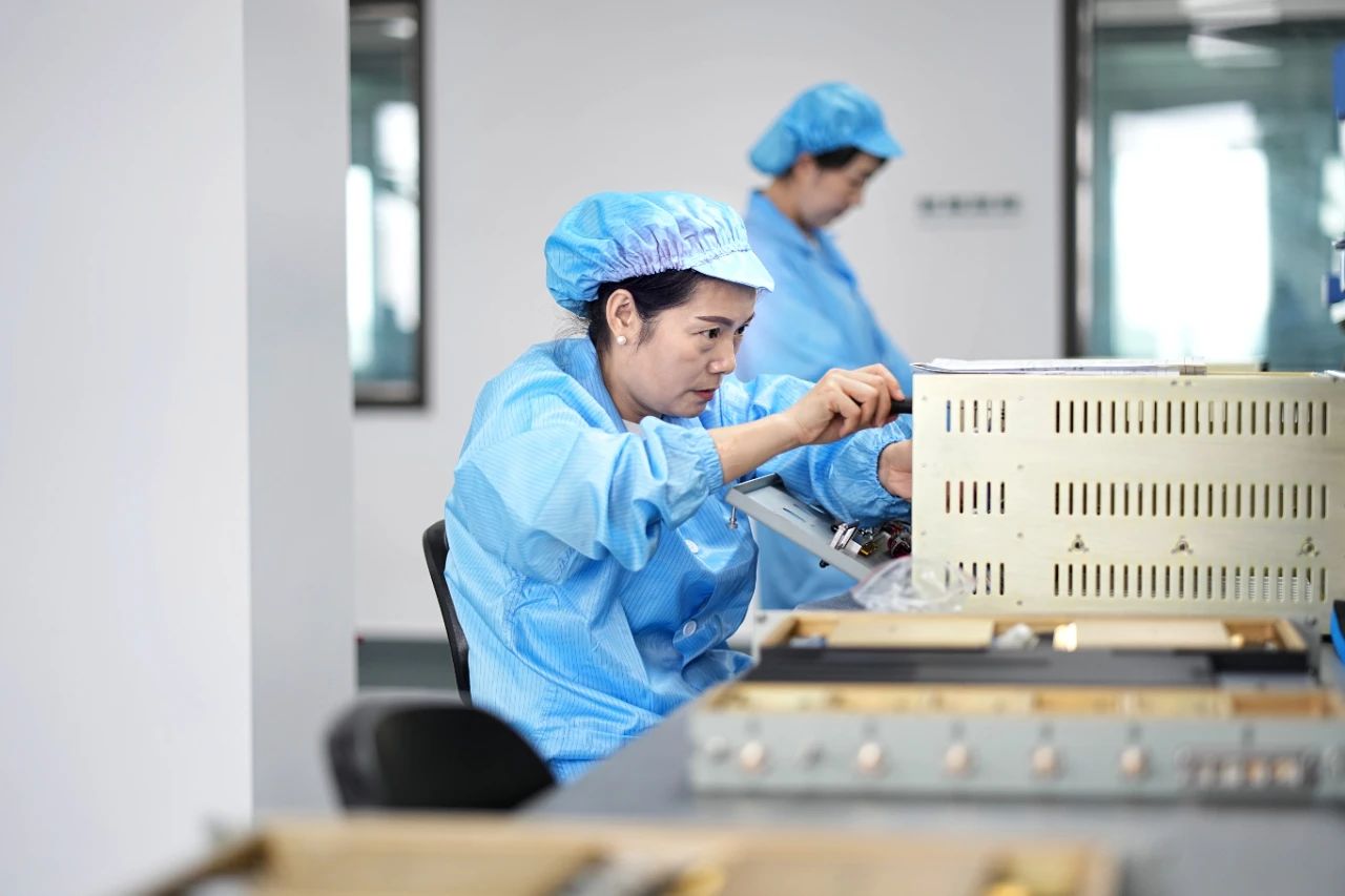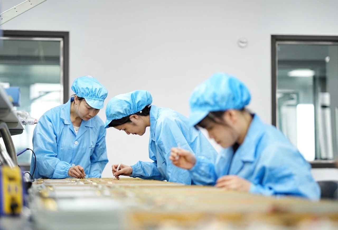 近年來,電裝組邁步向現(xiàn)代化生產(chǎn)模式轉(zhuǎn)型,在工藝、技能上不斷創(chuàng)新,幫助公司多個(gè)重要型號(hào)實(shí)現(xiàn)核心組件功能。在金屬背板上,0.2毫米的棱形角比芝麻還小,她們卻以線槍為“針”,將直徑0.4毫米的絞線精準(zhǔn)纏繞;在被稱為“微雕”的加工工序上,她們將不足發(fā)絲一半粗的導(dǎo)線,焊接在寬度一致的印制板線路上,不僅能精準(zhǔn)把握細(xì)如流絲的用錫量,還能完美復(fù)刻印制板的金屬紋路圖案。