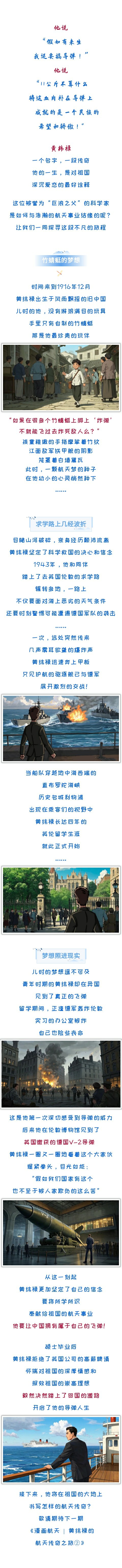 一代人有一代人的奮斗,一個時代有一個時代的使命。不朽的航天精神早已融入航天人的血脈中,穿越時空、傳承至今......每一代航天人都以自己的方式,書寫關(guān)于探索、勇氣、夢想與堅持的故事。航天科工四院推出“漫畫航天”系列漫畫,通過漫畫的形式,講述他們關(guān)于航天的故事。讓我們走進《漫畫航天 | 黃緯祿的航天傳奇之旅①》。