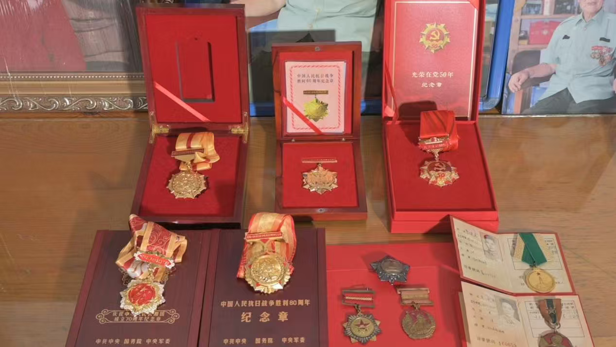 中國人民抗日戰(zhàn)爭勝利60、70、80周年紀念章、獨立自由獎章、三級解放勛章、西北軍區(qū)人民功臣獎章、華北解放紀念章、西南解放勝利紀念章、航天事業(yè)貢獻獎40、50、60年紀念章……這是李俊英及其家人最珍視的東西。