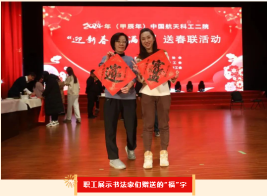 近日,在甲辰年新春佳節(jié)即將到來之際,為進一步激發(fā)廣大職工建功新時代、建設航天強國的豪情,營造喜慶和諧、健康文明的濃郁節(jié)日氣氛,由中國航天書法家協(xié)會主辦,中國航天科工二院工會承辦,203所工會協(xié)辦的2024年“迎新春 福滿門”送春聯(lián)活動在二院職工文化中心隆重舉行,為廣大職工群眾送上了新春祝福,傳遞了節(jié)日喜悅。
