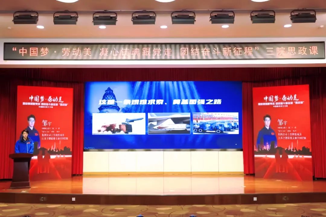思政課上,江蘇衛(wèi)視《最強(qiáng)大腦》全國十二強(qiáng)選手,來自301所的鄒宇講述了空天團(tuán)隊(duì)的故事,他所在的團(tuán)隊(duì)曾榮獲感動(dòng)飛航人物、集團(tuán)公司十佳班組等榮譽(yù);159廠90后高級(jí)技師賀瀟強(qiáng)講述了他如何傳承工匠精神,如何一步步成長(zhǎng)為全國技術(shù)能手、榮獲第七屆全國數(shù)控技能大賽冠軍的勵(lì)志事跡;三院勞動(dòng)模范、33所張吉先講述了他在飛航事業(yè)拼搏二十載,從設(shè)計(jì)師到工藝師到型號(hào)管理的奮斗經(jīng)歷;31所馬同玲講述了她作為全國婦聯(lián)十三大代表認(rèn)真履職,在科研工作中不斷創(chuàng)新、尋求突破的故事。