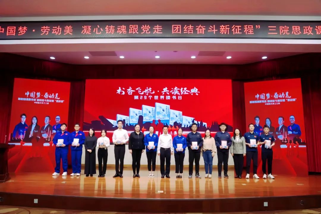 思政課舉辦之際,正逢中國航天日和世界讀書日,三院工會(huì)根據(jù)全國職工書屋開展千萬職工共讀經(jīng)典主題活動(dòng)的安排,在思政課現(xiàn)場(chǎng),向全體職工推介《大國重器的詩意文化》一書,在場(chǎng)領(lǐng)導(dǎo)向職工代表贈(zèng)送《大國重器的詩意文化》等書籍。