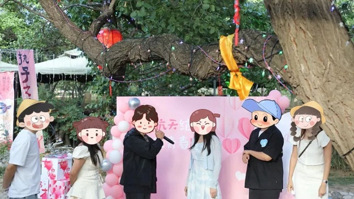 告白環(huán)節(jié),“心中有數(shù)”的單身男青年精準(zhǔn)地走到心動女生身邊,用樸實的語言表達(dá)愛慕之心,用鮮紅的玫瑰發(fā)出誠摯邀約。部分單身男女青年在現(xiàn)場氛圍的烘托中互動牽手,收獲相識的喜悅,成功牽手的男女青年收到了組織方準(zhǔn)備的精美祝福禮品。百年杏樹宛如一位慈祥的月老,見證著他們開啟新的情感篇章。