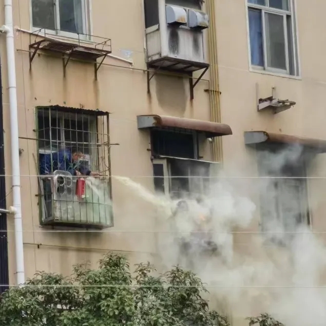 濃煙四散,航天科工九院紅陽公司廠區(qū)與該居民樓僅一墻之隔,運(yùn)輸管理部梁部長發(fā)現(xiàn)火情后,立刻召集人手。3分鐘內(nèi),8名職工、8瓶干粉滅火器準(zhǔn)備就緒,眾人一同奔赴現(xiàn)場。