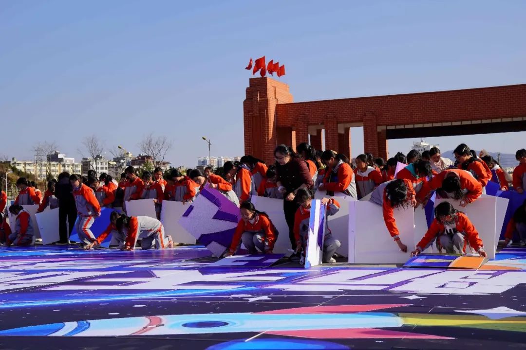 在知識尋寶環(huán)節(jié),500多位女童參與航天知識競賽,通過答題獲得一塊屬于自己坐標的追夢大拼圖,根據(jù)手中拼圖的坐標在操場上找到相應(yīng)位置,最后共同完成“航天筑夢未來 佑我春蕾圓夢”拼圖。