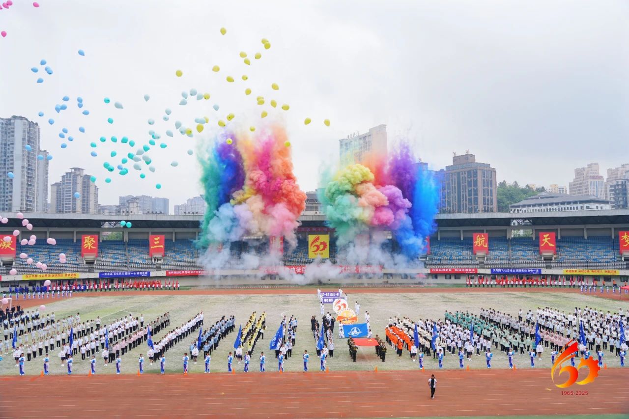 賽前,運(yùn)動(dòng)員代表、裁判員代表分別宣誓。由800人組成的廣播體操表演整齊劃一、舒展有力。而由十院100名退休職工帶來的太極八段錦表演則剛?cè)嵯酀?jì),集形與神于一體;兩側(cè)的舞龍更是靜中有動(dòng),傳統(tǒng)文化結(jié)合的節(jié)目贏得看臺上陣陣喝彩。貴州航天工業(yè)學(xué)校帶來的團(tuán)體操表演《旗風(fēng)航帆》氣勢恢宏,高燃的音樂更是將全場氛圍引向高潮。