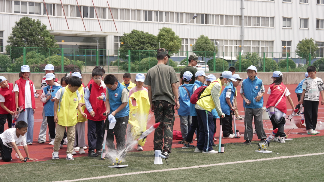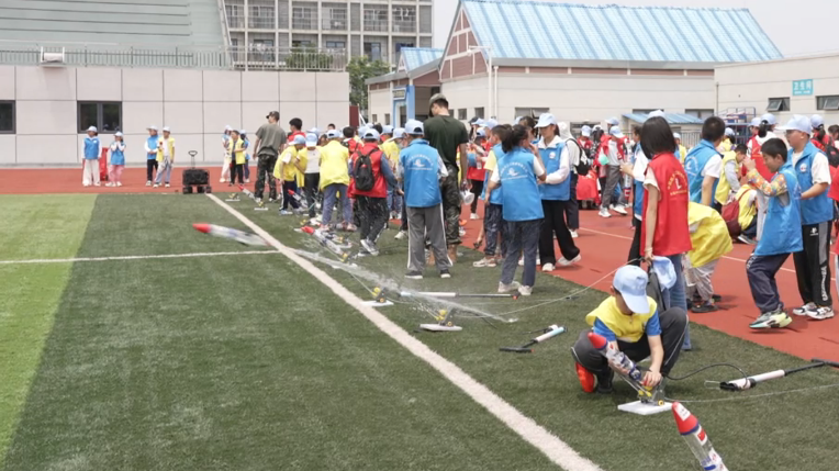 “3、2、1,發(fā)射!”隨著孩子們清脆的倒計(jì)時(shí)聲,自制水火箭“嗖嗖”地竄上藍(lán)天,孩子們仰著小臉興奮歡呼,互動(dòng)體驗(yàn)環(huán)節(jié)更是將活動(dòng)推向了高潮。水火箭的制作與發(fā)射,讓孩子們親手觸摸到了航天的魅力;模擬艙內(nèi)的太空漫步,讓孩子們仿佛置身于浩渺的星空之中,體驗(yàn)到了航天員的艱辛與榮耀……