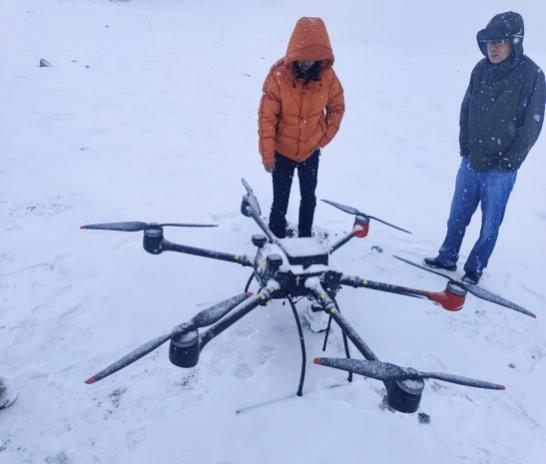 雪地強(qiáng)烈的反光讓人睜不開眼,但隊(duì)員們強(qiáng)忍不適,全神貫注地盯著監(jiān)視屏幕。無(wú)人機(jī)在凜冽的寒風(fēng)中艱難盤旋,載荷設(shè)備卻精準(zhǔn)地捕捉著每一寸雪景。經(jīng)過多次調(diào)試,團(tuán)隊(duì)終于獲得了高質(zhì)量的數(shù)據(jù)。直到收拾設(shè)備時(shí),處于注意力高度緊繃的他們才發(fā)現(xiàn)高原反應(yīng)已經(jīng)悄然來(lái)襲。