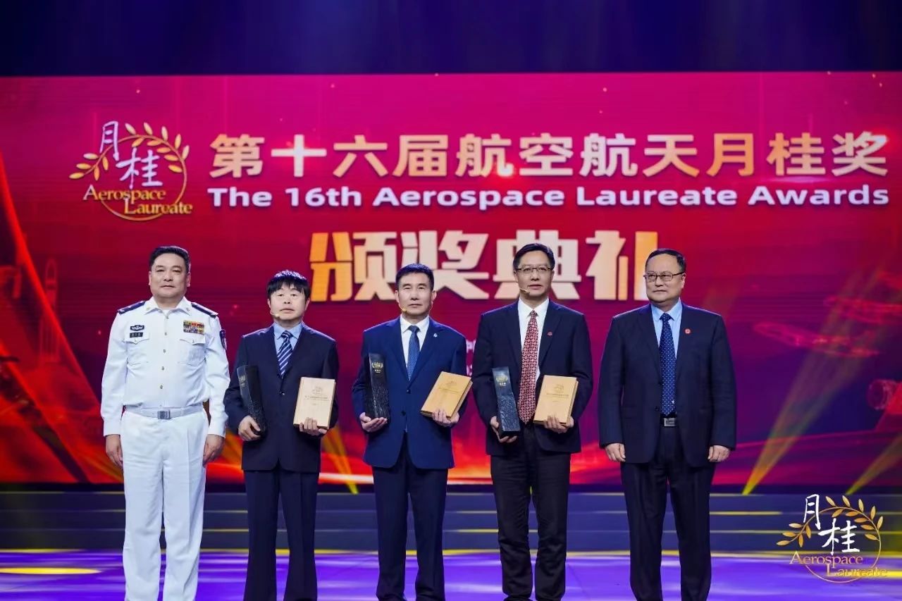 【又訊】11月11日晚,中國(guó)航展開(kāi)幕前夕,第十六屆航空航天月桂獎(jiǎng)?lì)C獎(jiǎng)典禮在廣東珠海舉行。航天三院31所凌文輝(下圖右二)榮獲“航空航天月桂獎(jiǎng)”殊榮。